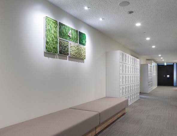 BGMはこの「みなぎるスペース」を中心に流れています。BGM導入に関しては、当初は様々な意見があったため、「新しい働き方を創造するための挑戦」として、東京オフィスでのパイロット導入をすることにしたんです。実際に導入を進める中で、社員からの声にも耳を傾け、要望の多かった廊下やトイレなどの共用部には、気になる生活音を和らげるマスキング効果を狙った環境音楽を導入しました。